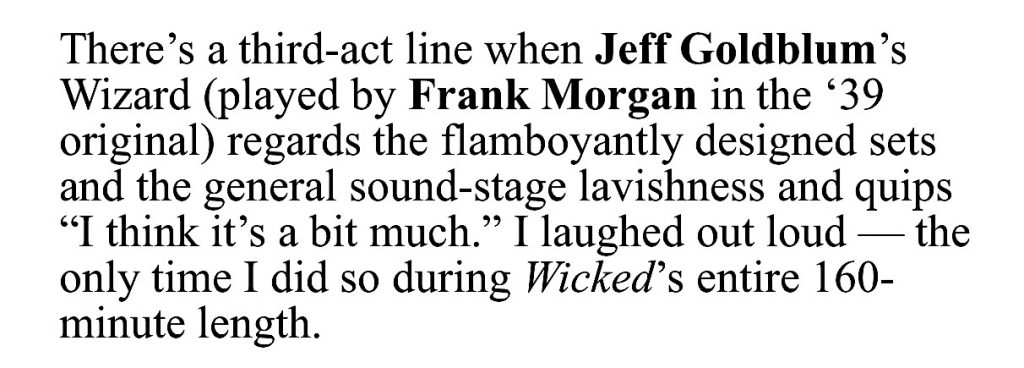 You can’t say Goldblum didn’t have the best line in the original Wicked: “I think it’s a bit much.”