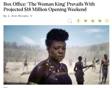 Gina Prince Bythewater‘s The Woman King hasn’t tanked — it’s actually performing fairly decently. Analysts are projecting $18 million by Sunday night. For a 19th Century African war film starring a distinguished actress who’s barely a movie star, the box-office response isn’t half bad.