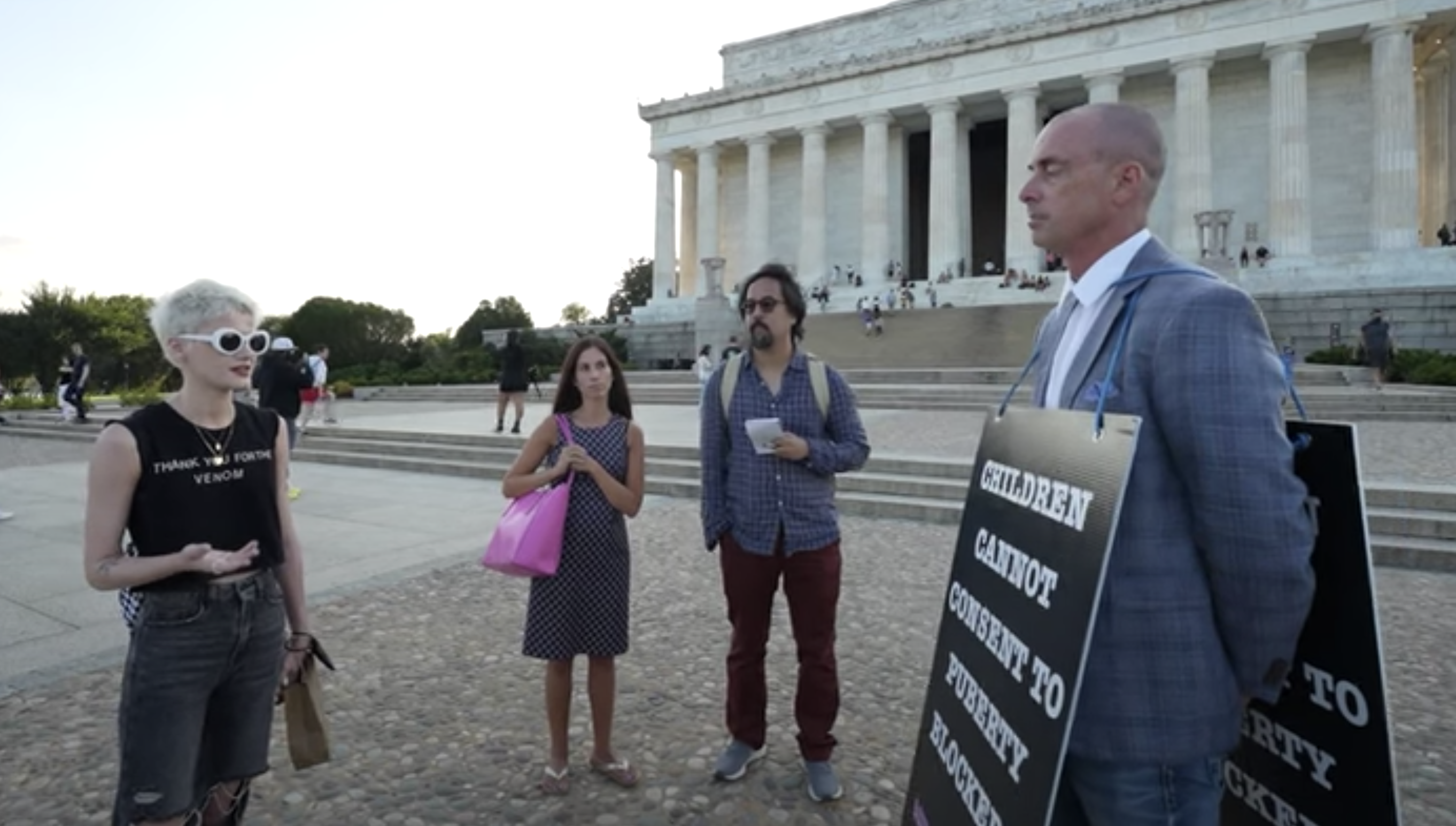 This 9.17.22 video, shot by “Year Zero with Wesley Yang“, is an argument about gender ideology between Billboard Chris (the billboard says “children cannot consent to puberty blockers“) and hyper Zoomer girl with the white glasses. It could be an interesting discussion if you could hear more of what they’re saying, but the jet planes keep roaring overhead. I’m with Billboard Chris…sorry.