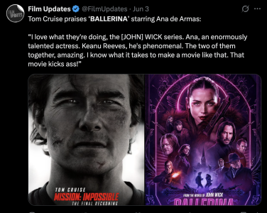 Earlier today: Tom Cruise is not doing Len Wiseman‘s Ballerina (Lionsgate, 6.6) any favors by (heh-heh) praising it.