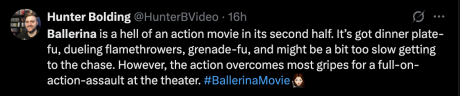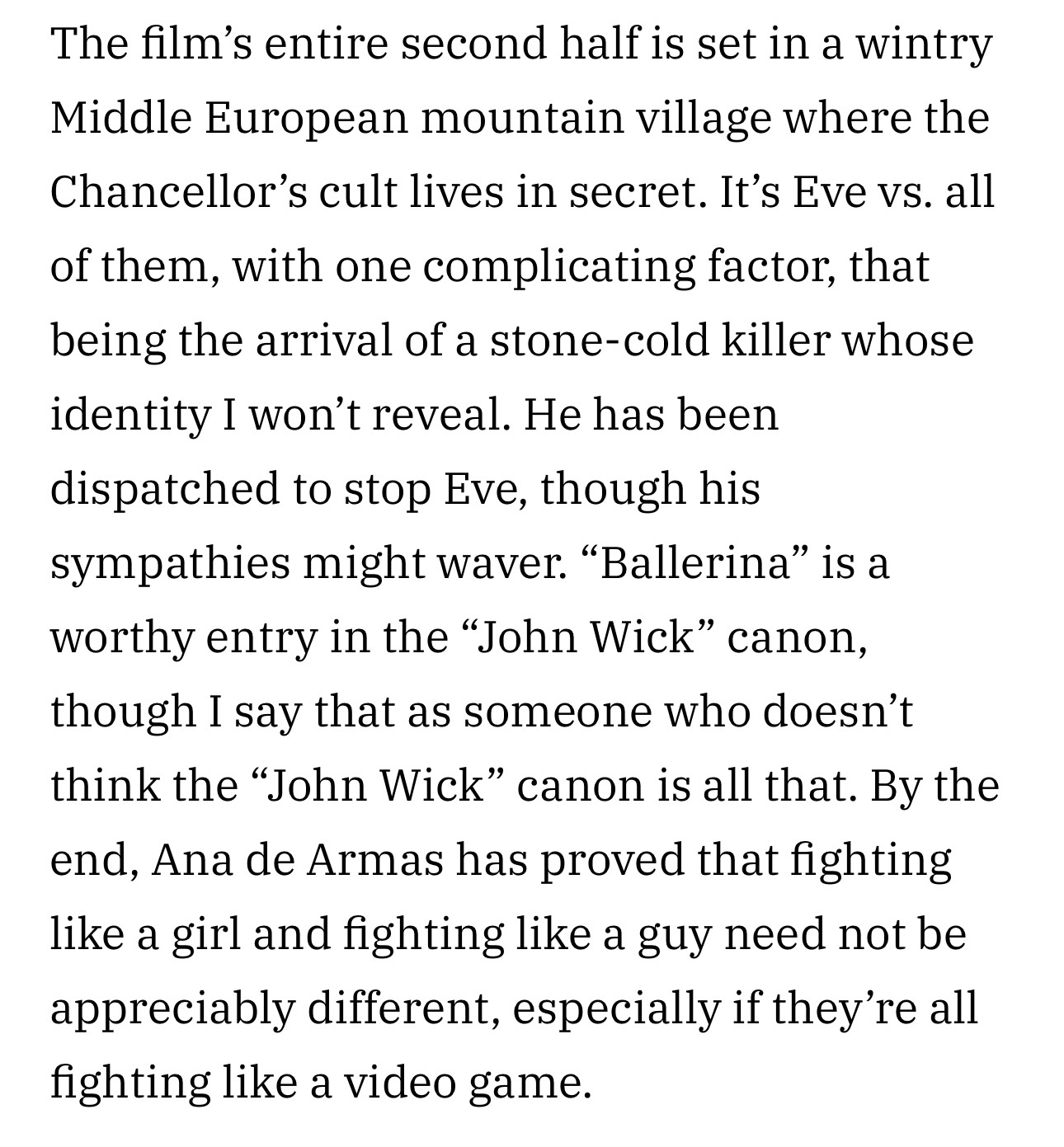 Bullshit! Wick-y flicks like Ballerina (which I’m actually going to see in a couple of hours) are slick garbage…cancer pills…soul destroyers. C’mon, we know this going in.
