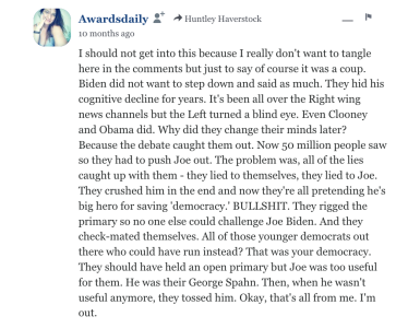 Biden: “There’s no possibility of my being completely candid with you…it’s simply beyond the realm of my own personality and psychological makeup to explain why I did a 180 last weekend by deciding to abandon my presidential campaign…a major pivot after insisting there was no argument or force short of Almighty God that could persuade me to quit.