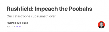 “In our case, swap for ‘Trump’, ‘Wall Street’, ‘tech bromides’, ‘master of the new universe pack thinking’ and ‘defeatist, reductionist death-spiraling detachment from their own product’. And then the analogy holds pretty nicely.