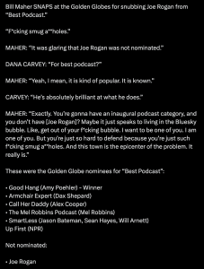 AI Sez: “The Joe Rogan Experience (JRE) consistently ranks as a top podcast globally, often #1 on Spotify and recently hitting #1 on Apple Podcasts in 2025, averaging around 11 million listeners per episode.”