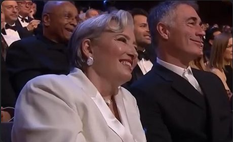 HE to friendo: “When did Kate Winslet become silver-haired?  And with close-cropped silver hair at that?  Would it be insensitive if I mentioned that she might not be slender enough to wear white?”