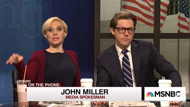 I was, like, floored by Kate McKinnon‘s dead-on inhabiting of Mika Brzezinski during last night’s SNL. Her sentence fragments and strangled gestures while Alex Moffat‘s Joe Scarborough explained the topic du jour, the looks of eye-rolling indignation, the stifled swordplay…perfect. Easily McKinnon’s most on-target bit since Hillary Clinton, and her biggest touchdown since stealing the Ghostbusters reboot.