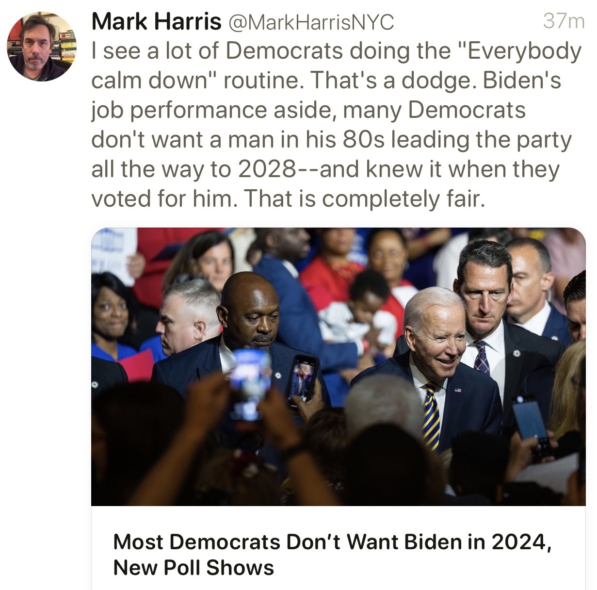 President Joe Biden is in excellent physical shape (he works out, rides a bike) and mentally spry, but most voters want someone younger. Joe will be just shy of 82 after the ’24 election and if he’s re-elected he’ll be 86 when he finishes his second term. That’s too old. I really, really want Pete Buttigieg to run in his place in ’24. I realize that Pete would face an uphill situation as far as BIPOC voters are concerned, but the reality has to be faced — if Biden’s opponent is Ron DeSantis or Glenn Youngkin or Liz Cheney, he will most likely lose. Pete would be a far better Democratic candidate at this stage of the game. Listen to him — he’s got it.