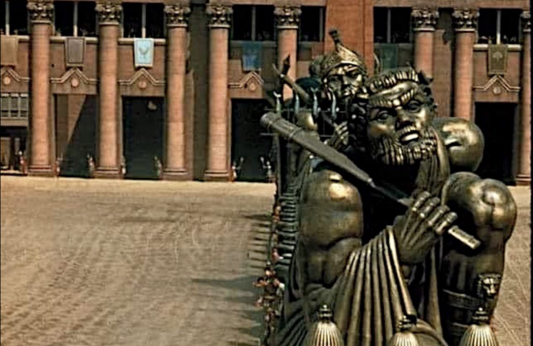 In yesterday’s “Strange Architecture” piece” I criticized the odd decision of Ben-Hur‘s production designer to build a large, visually obstructive island in the middle of the Jerusalem chariot-race stadium. The result was that a significant portion of the crowd was only able to see half the racetrack and therefore half the action.