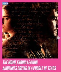 The deplorable terms are (a) “pool of tears” and (b) “puddle of tears.” I’m not saying that Hamnet‘s Globe Theatre finale doesn’t deliver a meltdown. It surely does. I’m saying that any and all allusions to pools or puddles of tears are verboten.