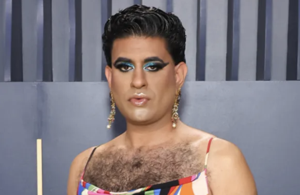 One of the most self-satirizing fashion calamities of the night was worn by Queer Eye‘s Tan France, known for his silver-white pompadour hair. The instant I saw his 18-inch wide chopstick bowtie during the pre-show red carpet sequence, I muttered to myself “you fucking pretentious asshole.”