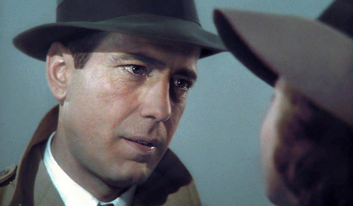 The Humphrey Bogart-Lauren BacallBig Sleep still below is probably the best colorized b&w image from a Hollywood film mine eyes have ever beheld — ditto the Bogart-and-Ingrid BergmanCasablanca shot below it. I’m aware that monochrome films of the ’30s and ’40s were shaded and lighted to deliver maximum impact in terms of a certain silvery compositional aura, but these really look good.