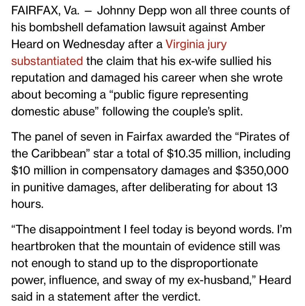 Is it fair to interpret this shocking verdict as some kind of seminal #MeToo setback? As in “the carte blanche era has come to an end”? Or is it just a matter of “Amber couldn’t sell it but Johnny could”? You tell me.