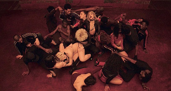 The first half, once it gets going after a 10- or 12-minute long video interview sequence, is far better. Climax is suddenly a wild, breathless, crazy-pump tribal dance flick — three (or four?) longish Steadicam shots of 20something dancers (Sofia Boutella is the only one I recognized), auditioning for a tour of some kind inside a modest-sized dance hall painted strawberry red (which half reminds you of the reddish gym-sized dance hall in Robert Wise‘s West Side Story), going gloriously nuts, letting loose and kicking out.
