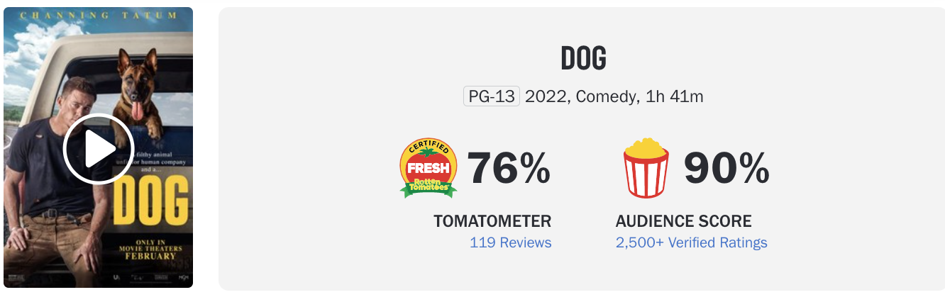 My favorite film of the week so far has been Channing Tatum and Reid Carolin‘s Dog, which I paid to see at Santa Barbara’s Fiesta a couple of days ago. No one’s idea of a great or exceptional film, but a reasonably pleasing, emotionally accessible road-trip flick. It didn’t bother me, I paid attention the whole time, the dog (Lulu) is cool, I chuckled once or twice, and Tatum’s weight is down where it used to be.