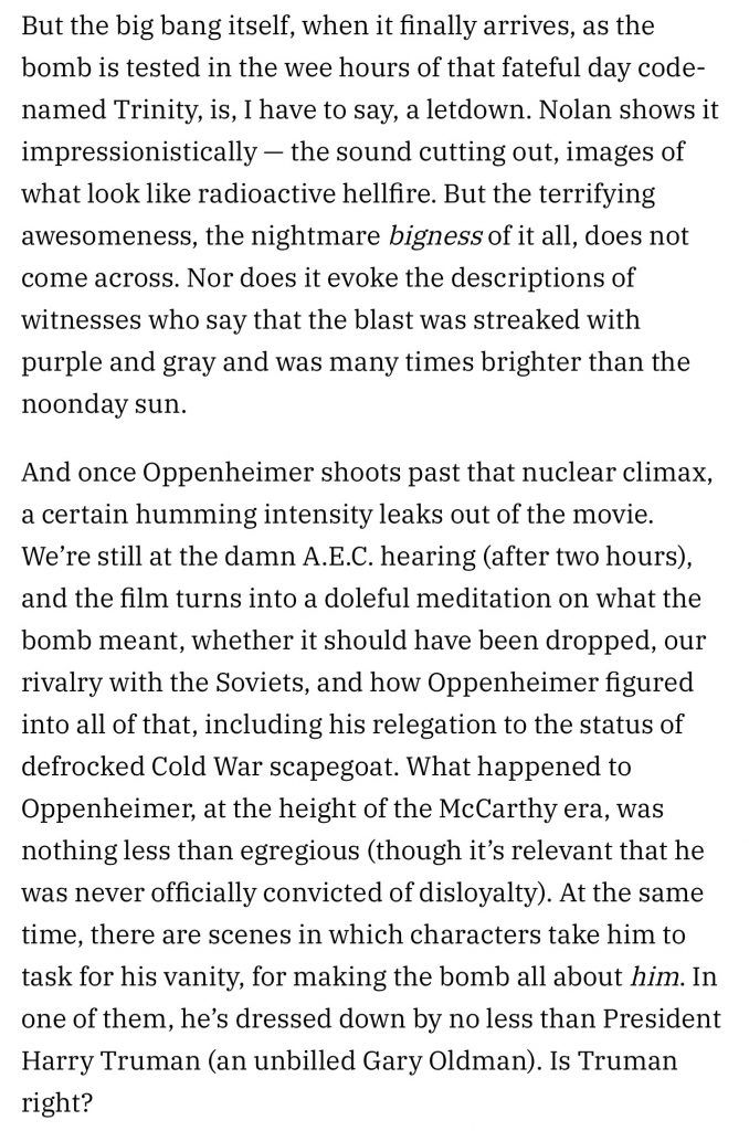 Even Nolan’s recreation of the Trinity explosion is a “letdown” Owen says…WHAT??