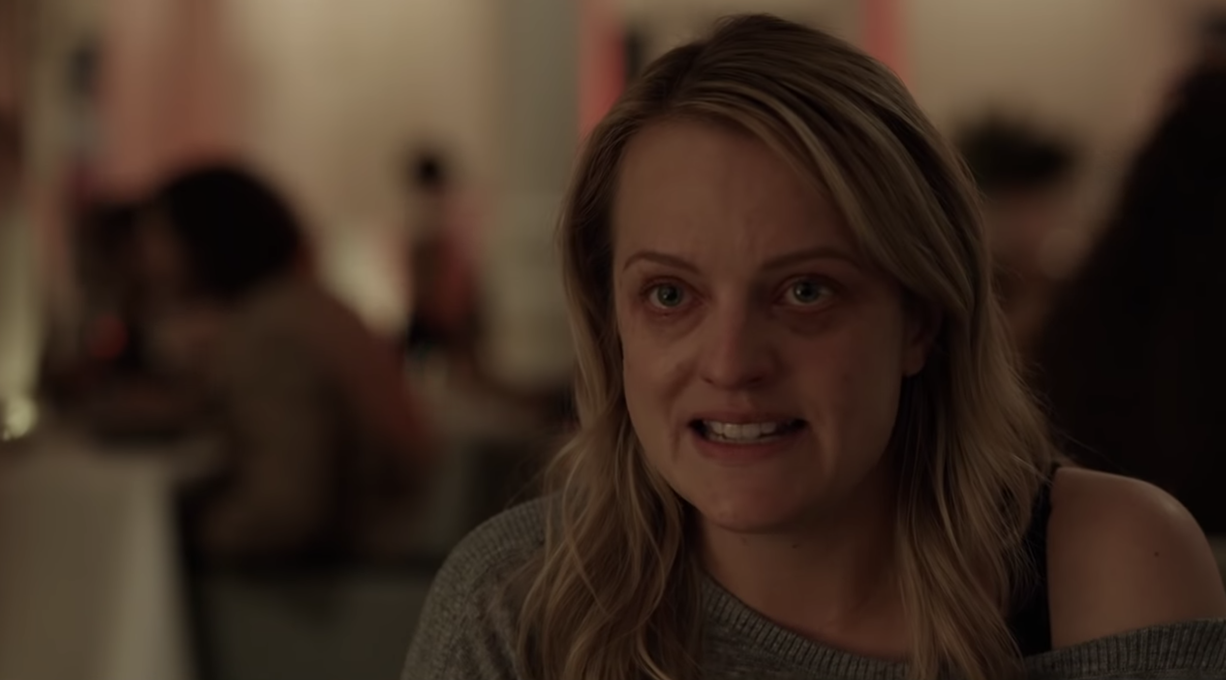 HE to Gleiberman: “Dramatic finesse”? This is a Blumhouse film deploying the usual suspense-and-shock tactics. And to emphasize her anxiety and panic, Moss does everything but bleed from her eyeballs.”