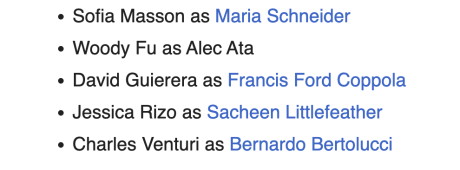 On top of which Waltzing, directed and written by Bill Fishman and set between 1969 and 1974, side-dips into the whole Last Tango in Paris thing with Maria Schneider and Bernardo Bertolucci, only a few months after Being Maria screened in NYC.