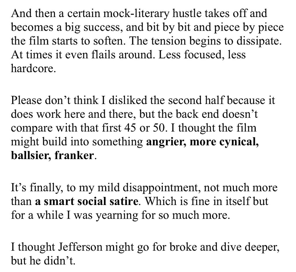 “Not happening…way too laid back…zero narrative urgency,” I was muttering from the get-go. Basically the…