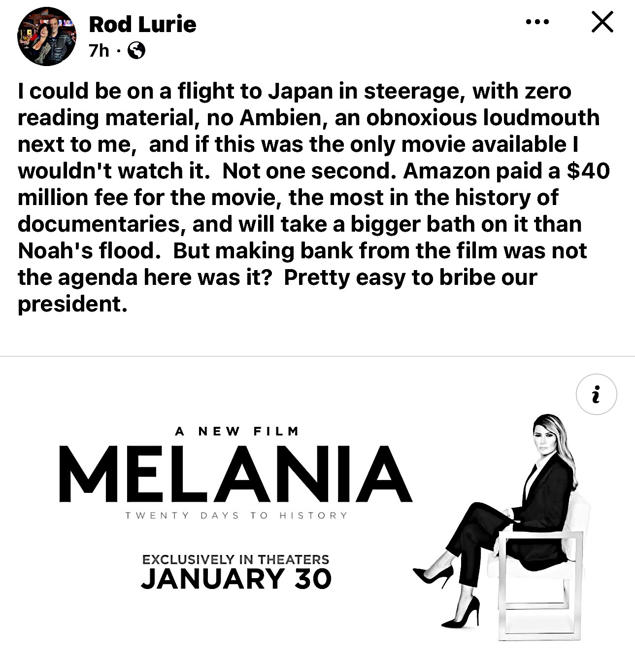 It’s certainly fair to analogize the imminent opening of Brett Ratner‘s Melania with Susan Alexander Kane‘s anguished debut at the Chicago Opera House. No matter how anyone tries to spin it, the response will be humiliating. Amazon paid $40 million to license the film and produce a follow-up docuseries on the first lady…whore money…obeisance before power.