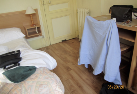 While roaming around Munich 10 or 11 years ago, I succumbed to an impulse buy — a Tom Rusborg of Copenhagen shirt — linen, light blue, banded collar. I’m wearing it now. Here’s a snap of the same shirt in a small room inside Hotel Bonsejour, maybe a year later. I love the idea of shirts enduring for decades.
