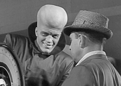 Irrefutable Evidence August 16, 2025August 16, 2025 by Jeffrey Wells Cecil B. DeMille’s mostly bald head was at least 50% larger than Billy Wilder’s nearly-as-bald cranium. Look at the difference! They’re standing right next to each other! DeMille could almost be a Kanamit from Rod Serling “To Serve Man”.