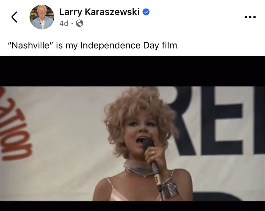 Sorry, but I’m removing it from my Altman pantheon. I loved it in ’75 but I’m pretty sure I’ll never watch Nashville again. It’s failed the test of time.
