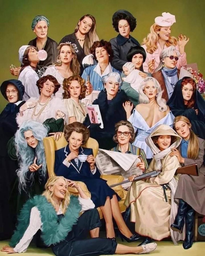 …if a gifted, pro-level artist could paint or compose a serious “Meryl Streep and all her significant roles” group portrait — not a cut-and-paste job like this thing but one in all of these Meryl incarnations are freshly considered and re-angled (i.e., not dependent on marketing materials).