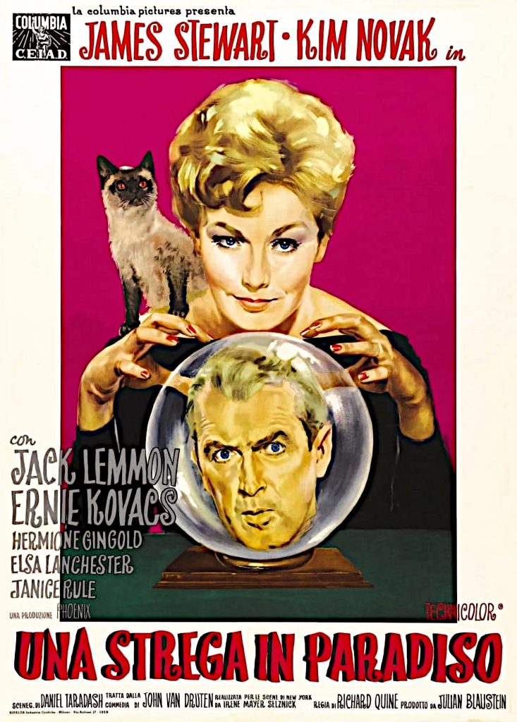 James Stewart’s eyeliner makes him look like a mad ghoul in this German one-sheet for Bell, Book and Candle, which opened on 11.11.58.