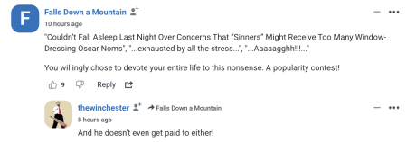 I realize that most people do what they do for the money they earn and that’s fine, but the best jobs are “payment” in and of themselves. If you make great money from these gigs or devotions, terrific. If you make mezzo-mezzo or even shitty money from them, that’s still moderately okay or at least tolerable because — hello? — you still have a great job. And that’s a relatively rare thing.