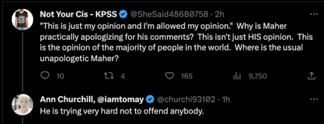 Bill Maher: “When you get a little older and you’ve mutilated your body…you- maybe that’ll be a decision your happy with or maybe it won’t but there’s no going back.” pic.twitter.com/9sJuMTBVxB