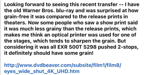 There’s something really and truly wrong with 4K Bluray enthusiasts who get almost sexually aroused by stand-out, golfball-sized grain. Or, as I’ve called it for many years, “Egyptian grainstorms” by way of delta swamp mosquitos.