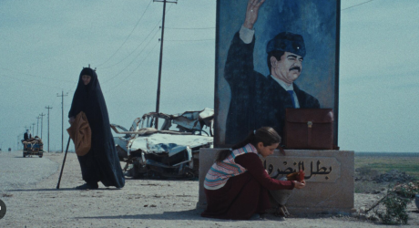 The plot comes from Hadi’s childhood memory of a school event in which one member of each class is chosen to bake a cake for Saddam Hussein‘s birthday (4.28). Lamia is selected to be her class’s cake-baker. She and Bibi are dirt poor and can barely afford, much less find, the chief ingredients (eggs, flour, sugar) but failing to deliver or, worse, refusing this honor is out of the question.