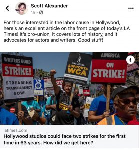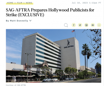 Variety‘s Matt Donnelly is reporting that a SAG strike is not only imminent but hours away. If there’s no deal by Wednesday then forget it — the whole industry shuts down. No more promotional appearances by talent (including appearances at the Venice, Telluride, Toronto and New York film festivals) as well as a halt of all film and TV productions. “It would be a miracle at this point” to reach a deal by this Wednesday, one producer told Donnelly. As with the WGA strikers, the key issue appears to be about the sharing of streaming revenues. I don’t know anything but this is what’s being reported as we speak.