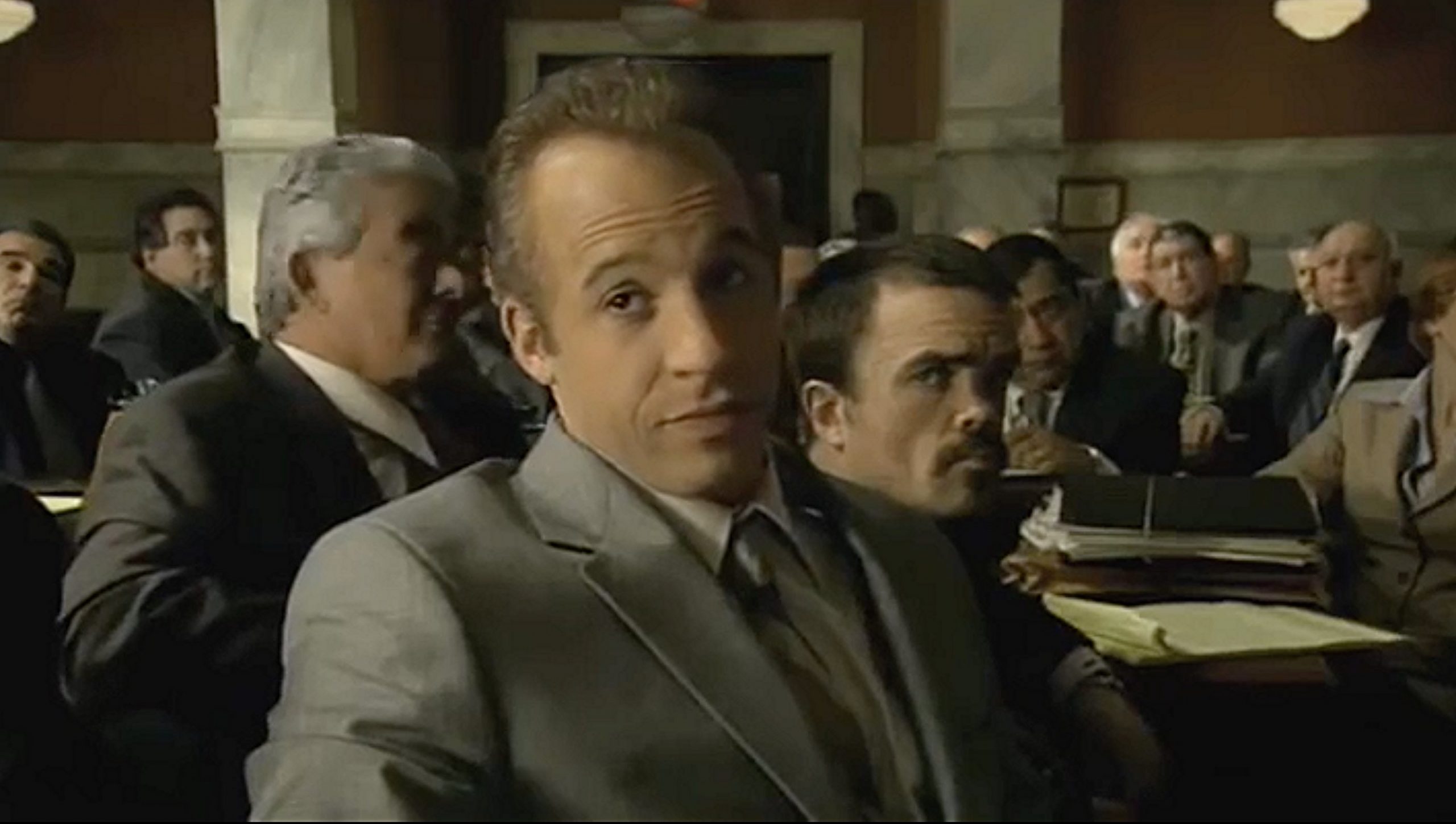 His slightly fake-looking rug aside, Diesel is amazing. At times he seems to be just joshing around and more into charming the audience (along with the on-screen jury) than rendering a character, but it gradually seeps in that he’s really playing Jackie DiNorscio and capturing what made him tick and who he really was.