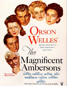 “Welles again made a decade-spanning epic about a flawed macher, but instead of Charles Foster Kane, played by Welles like a charismatic blunderbuss, it was an immature CFK, George Amberson Minafer, a snotty guttersnipe of a young man portrayed by the untalented Holt.