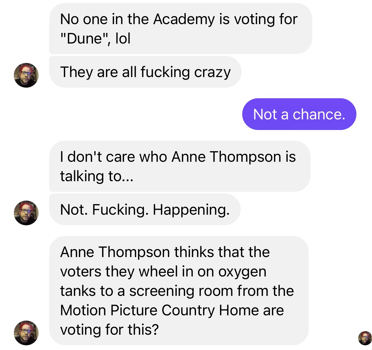 I’ll never watch Dune again — that’s for damn sure. No way this thing becomes any kind of serious Best Picture contender…not a snowball’s chance.