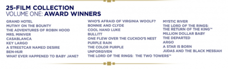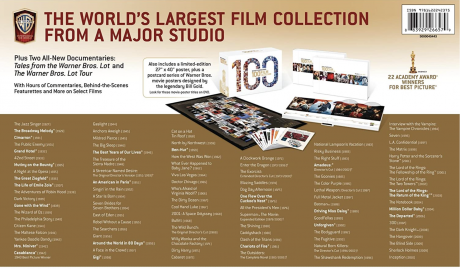 The new Warner Bros. One Hundredth Anniversary Blu-ray Box Sets are broken up into four 25-film collections ($149 each) according to genres — (1) Award Winners, (2) Comedies, Dramas and Musicals, (3) Fantasy, Action and Adventure and (4) Thrillers, Sci-Fi and Horror.