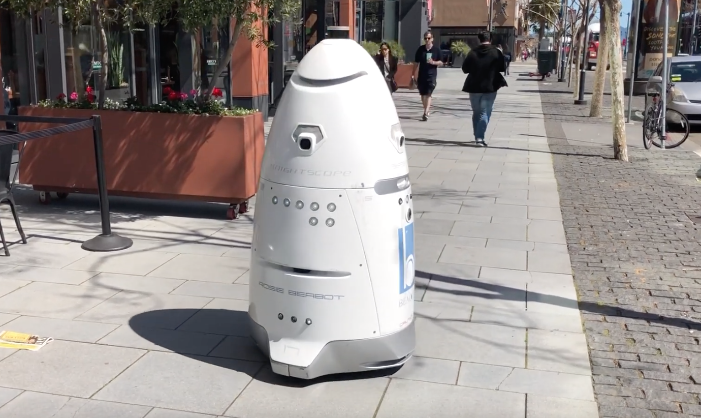 Sidewalk surveillance robots have been operating on San Francisco sidewalks for a couple of years now, but until yesterday morning I’d never personally encountered one. It senses your presence, checks you out and will roll out of your way if you come too close. In a phrase, cautious and deferential.