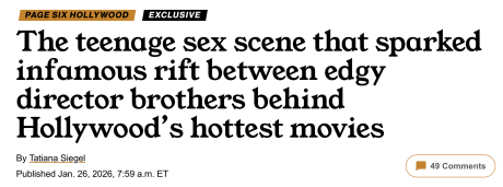 Siegel: “Using a minor for nudity and a sex scene would flout industry norms, including a Screen Actors Guild rule that stipulates work conditions not be ‘detrimental to the health, morals and safety of the minor.’ Those familiar with the chain of events say Josh’s recklessness was beyond the pale.”