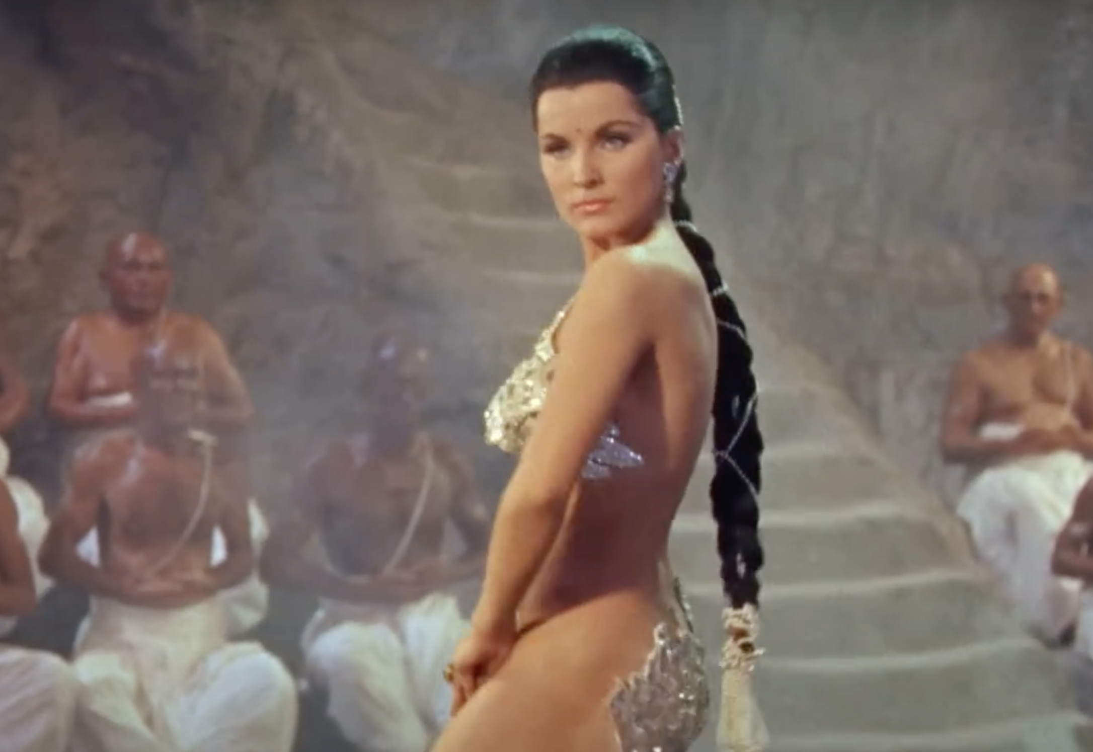 …is the 1.37 aspect ratio. Debra Paget (still with us at age 91) may have been at her fetching peak in 1959, but boxy aspect ratios have always been and always will be mesmerizing. Look at all that head room…acres of it! And all hail director Fritz Lang, by the way — Metropolis, M, Fury, The Return of Frank James, Man Hunt, Scarlet Street, Cloak and Dagger, Rancho Notorious, The Blue Gardenia, The Big Heat, Human Desire, While the City Sleeps and, last and least, The Indian Tomb.