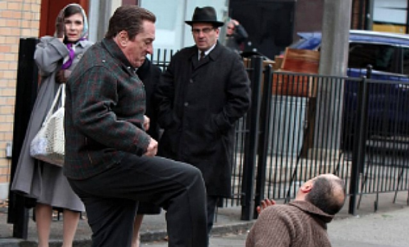 But how in the name of St. Christopher could Scorsese make a movie about the guy who killed Jimmy Hoffa (De Niro’s Frank “The Irishman” Sheeran) and which is wall-to-wall with Italian mob characters whose names end in vowels (Russell Bufalino, Felix “Skinny Razor” DiTullio, Joe “Crazy Joe” Gallo, Bill Bufalino, Angelo Bruno, Tony Provenzano, Anthony Salerno)…how could a movie like this not resemble Goodfellas? I’ve seen set photos of a dark-haired DeNiro pistol-whipping and kicking the shit out of guys so Thelma is obviously avoiding certain aspects.