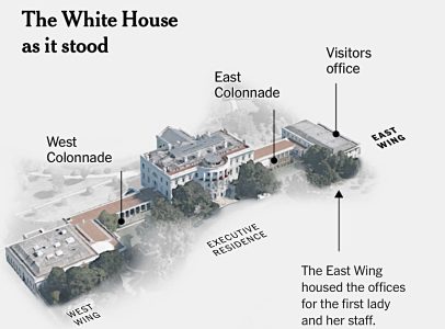 The drawings/models of the older, classic White House vs. the Trump remodelling were copied from a 10.22.25 N.Y. Times story.