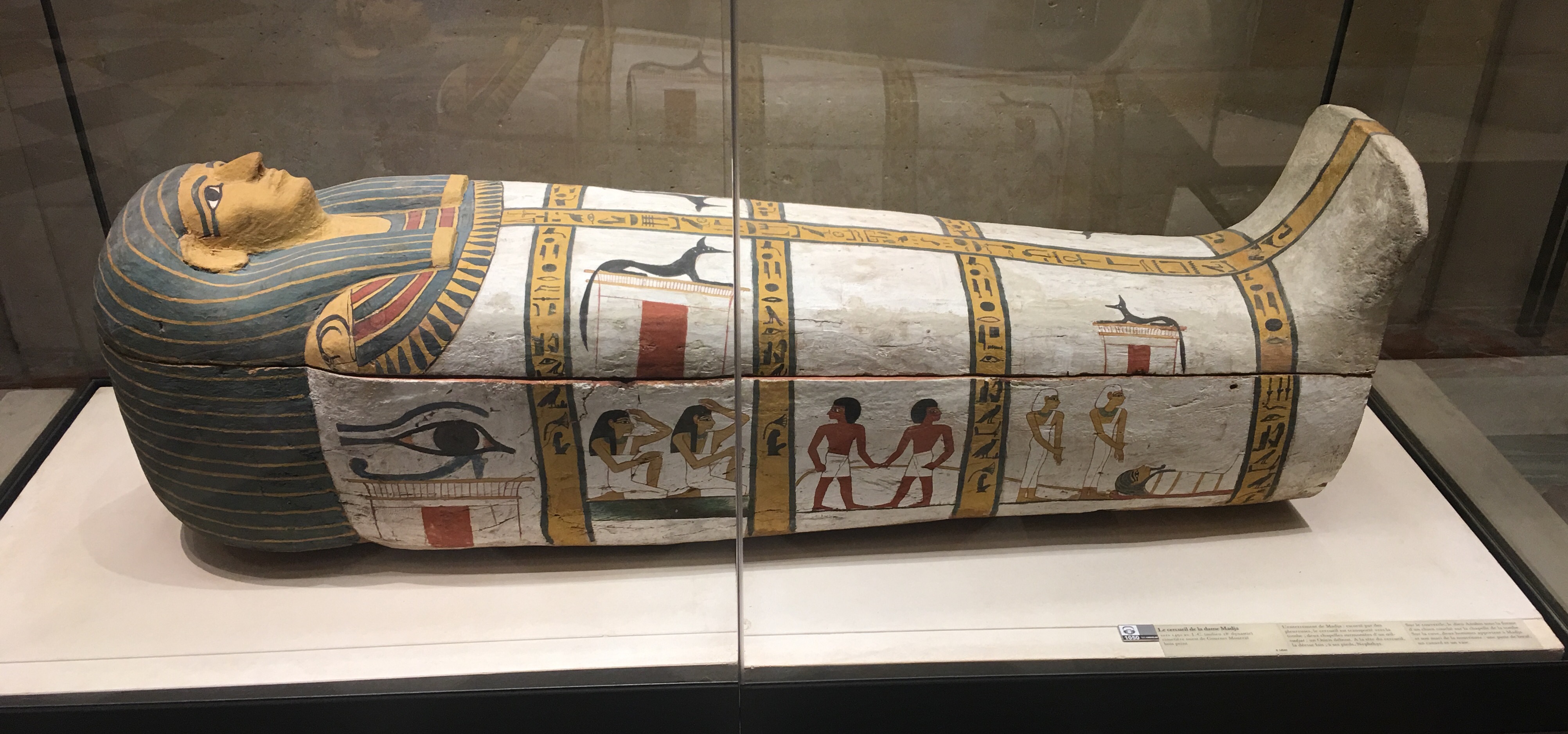 HE’s own Svetlana Cvetko and David Scott Smith invited me to join them early Saturday evening at the Louvre. A connected friend of Svet’s escorted us inside to a restricted-access tour of the Egyptian exhibit. I had never before wandered through this world-renowned museum as an invitation-only cool cat. No crowds or lines to cope with. The Egyptian statues, sarcophagi, relics and artifacts were nothing to sneeze at either. The highlight was the 4000 year-old chapel of the tomb (or “mastaba”) of Akhethotep, a bigwig in the Old Kingdom who was close to the king. (Egyptian rulers weren’t called pharaohs until the New Kingdom.)