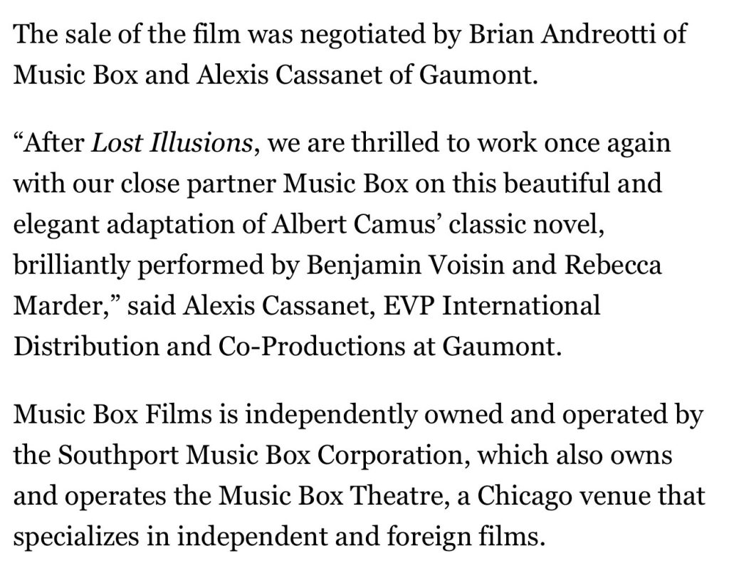 Why Is Music Box Films Suppressing Awareness of Its 4.3.26 Release of Ozon’s “The Stranger”?