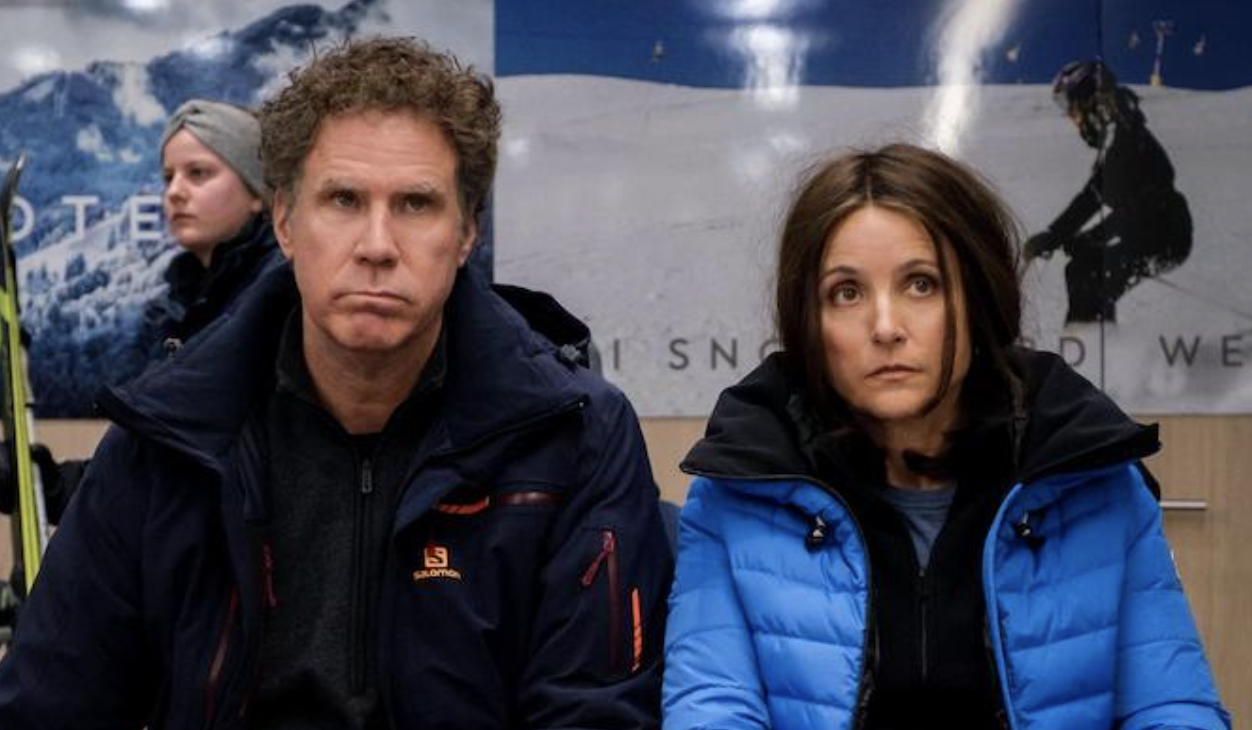 Both films condemn the dad in question (Will Ferrell in the American version, Johannes Bah Kuhnke in Ostlund’s version) and more or less agree with the furious wives (Julia Louis Dreyfus, Lisa Loven Kongsli) that dad should have (a) super-heroically yanked the wife and kids out of their seats and hauled them inside in a blink of an eye or (b) hugged them before the avalanche hit so they could all suffocate together.