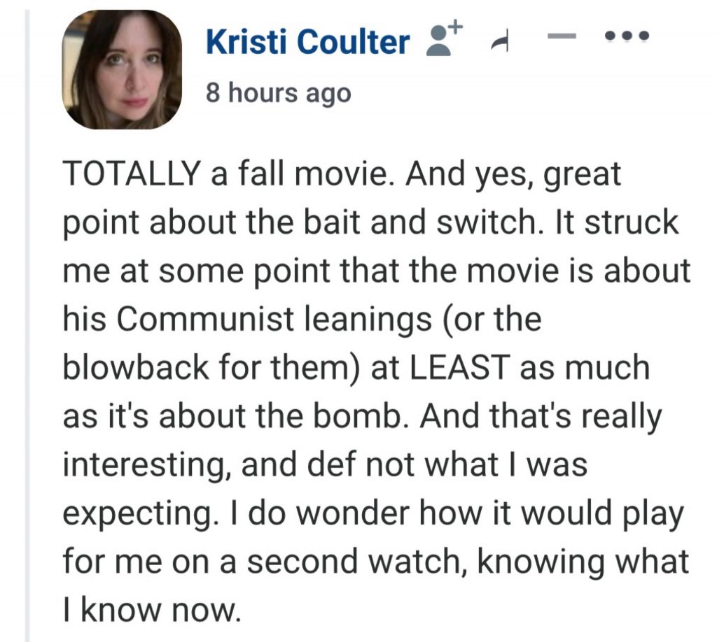 As HE commenter Kristi Coulter noted a few hours ago, Chris Nolan’s Oppenheimer has been, in fact, dishonestly sold and promoted. Because it’s basically a bait-and-switcher.